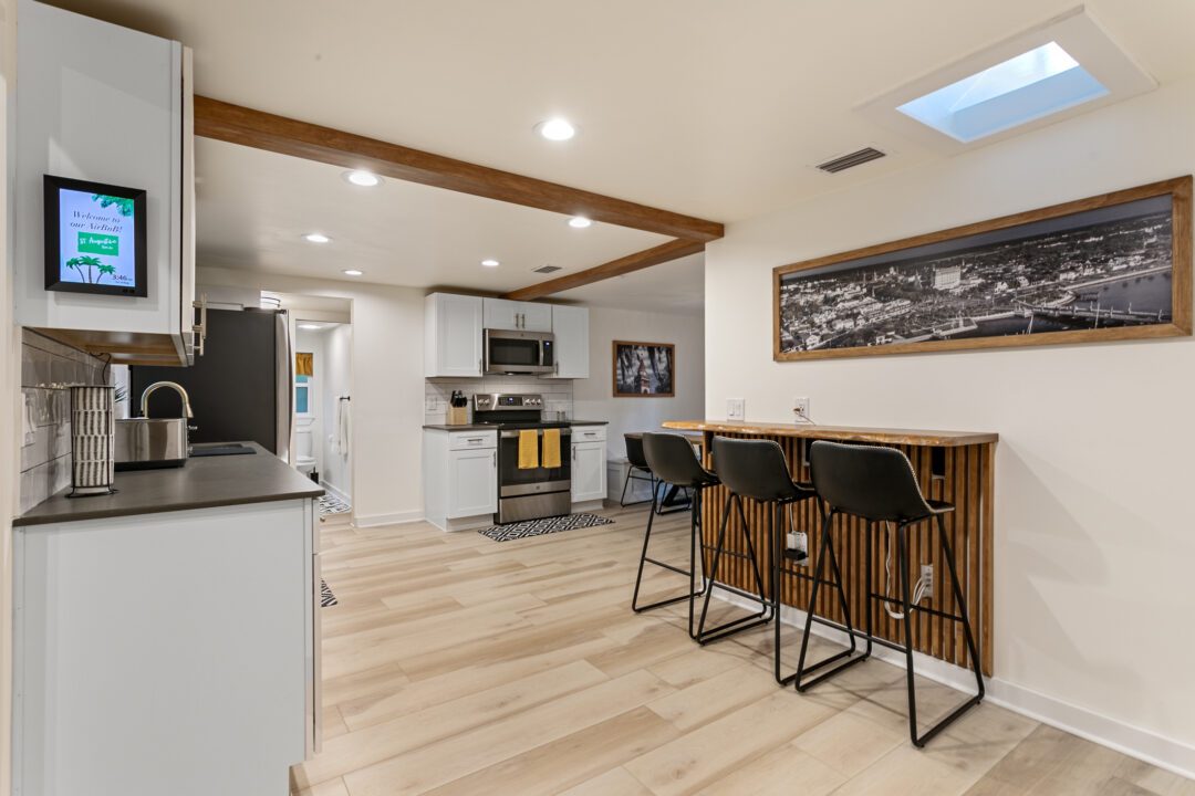The Vibe: Sleek quartz countertops, shaker cabinets, and durable luxury vinyl plank (LVP) flooring that can handle sand and paws.